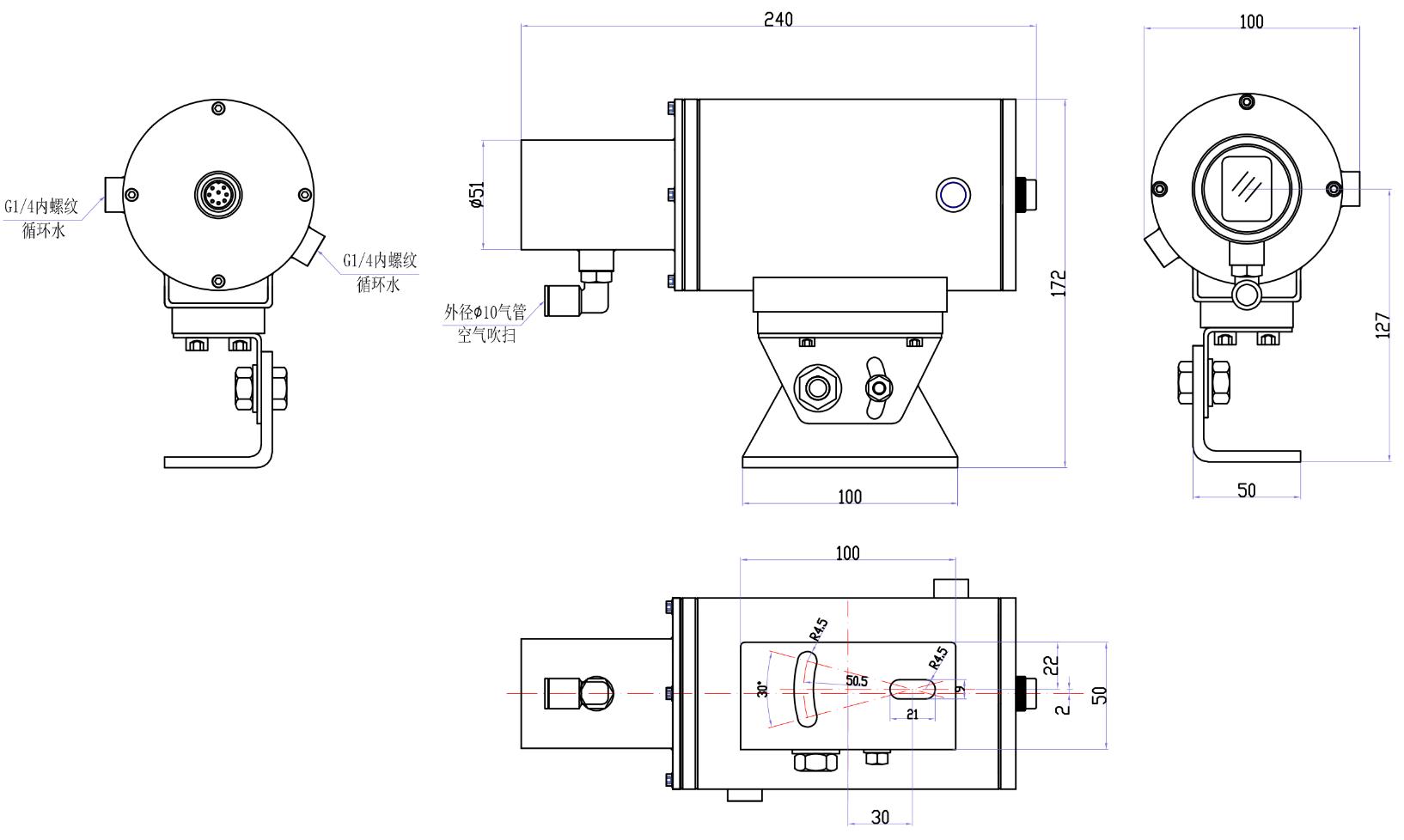 ● 不锈钢外壳,可通水、气停止(zhi)冷却(que)