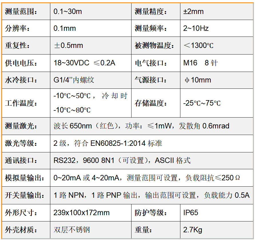 ● 丈量精度±2mm,分(fe🌄n)辩(bian)率0.1m🐷m,反(fan)复性±0.5mm