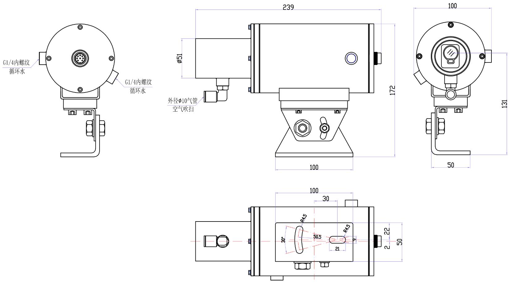 ● 不锈钢(gang)外壳,可(ke)通水、气停止冷却(que)