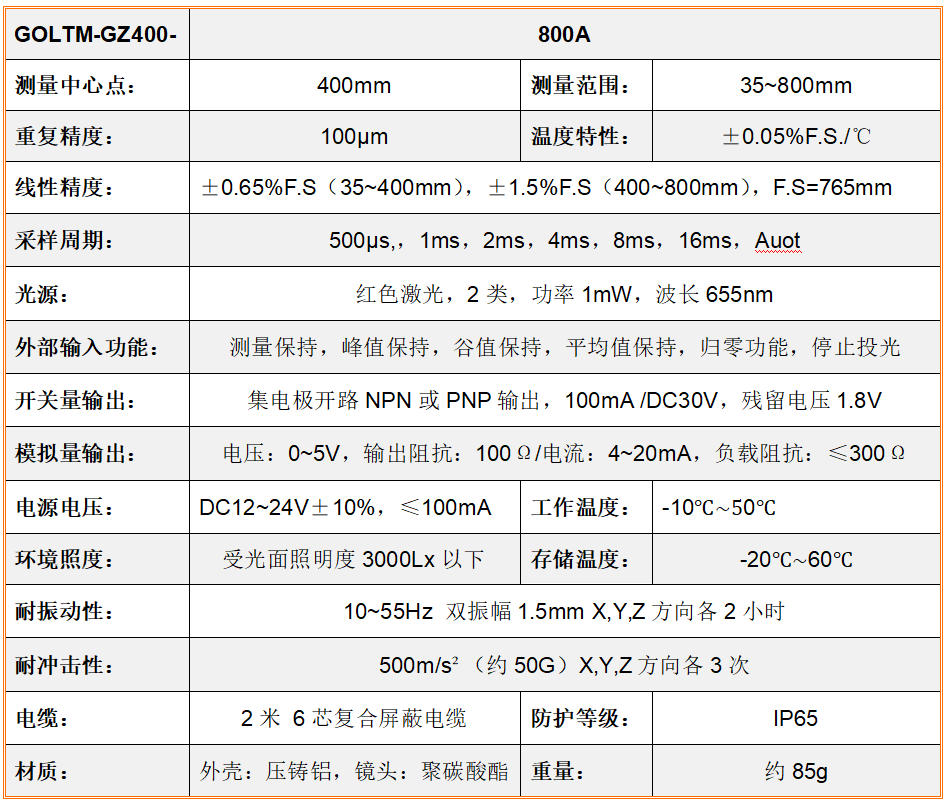 GOLTM-GZ400-800A型严密激光行业测距仪可以用在于高的精密度、高效率的侧量物品位移、寸尺、位置及位置差,平衡装置复位简概,数码图文显现出来可以说 时间或可以说 时间,具有摹拟量键入及面板开关量键入。● 激(ji)光三角形(xing)丈量道理,高(gao)(gao)精度、高(gao)(gao)速率、高(gao)(gao)🎀活络(luo)度丈量细小位(wei)移